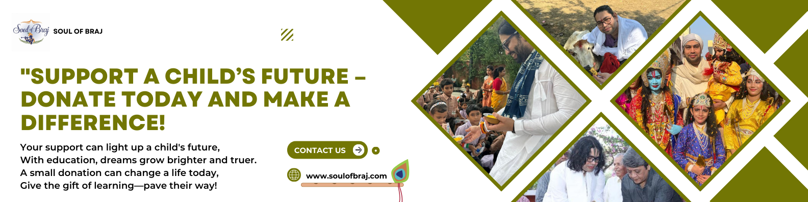 The Soul of Braj Community is a dedicated group of volunteers and supporters committed to serving underprivileged children and preserving the sanctity of Vrindavan